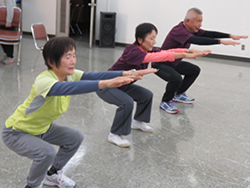貯筋運動は、「健康寿命」を延ばすために老後に備えて筋肉を貯める体操です。高齢者でも安全に楽しく筋力アップのできる体操です。特別な器具を使わないので、いつでも、どこでも気軽にできます。当NPOは「貯筋運動」を中心に、地域に広める活動をしております。