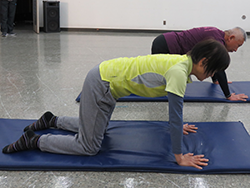 膝の位置を変えることでレベルの調整できます。膝を頭から遠い位置につくほど、きつい運動になります。